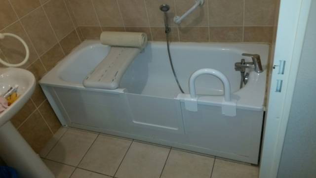 Solutionbain by Renovbain spécialiste dans l'ouverture de Baignoire en fonte avec une pose d'un portillon anti-éclaboussure pour personnes agées pou bien ayant une mobilité réduite(PMR) au Beausset dans le var en région...